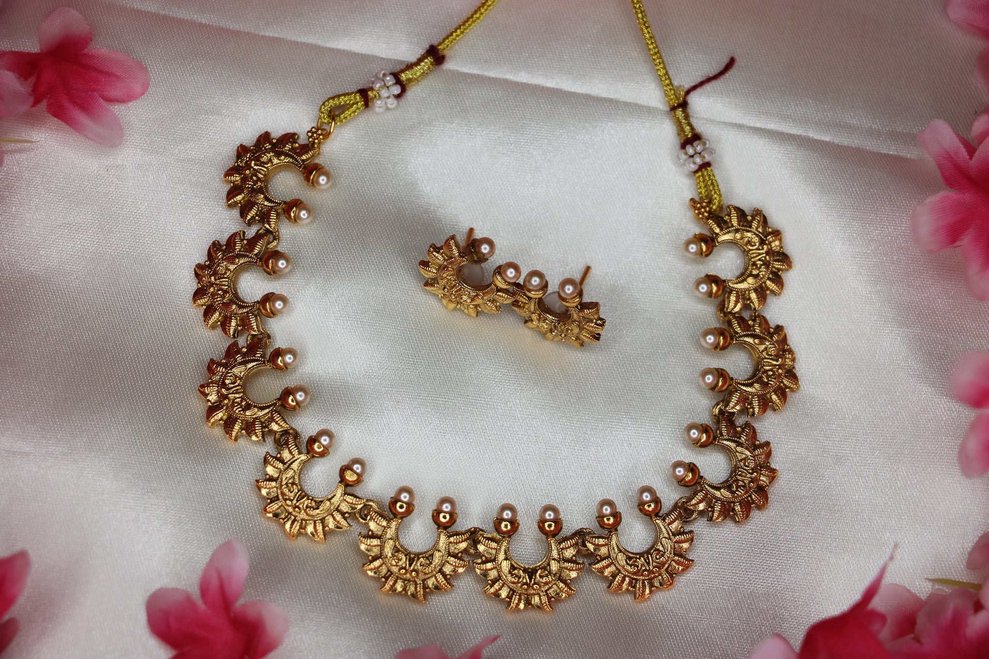 Half Moon With Pearl Necklace Set | Antique Gold | CK16 | Tangamala