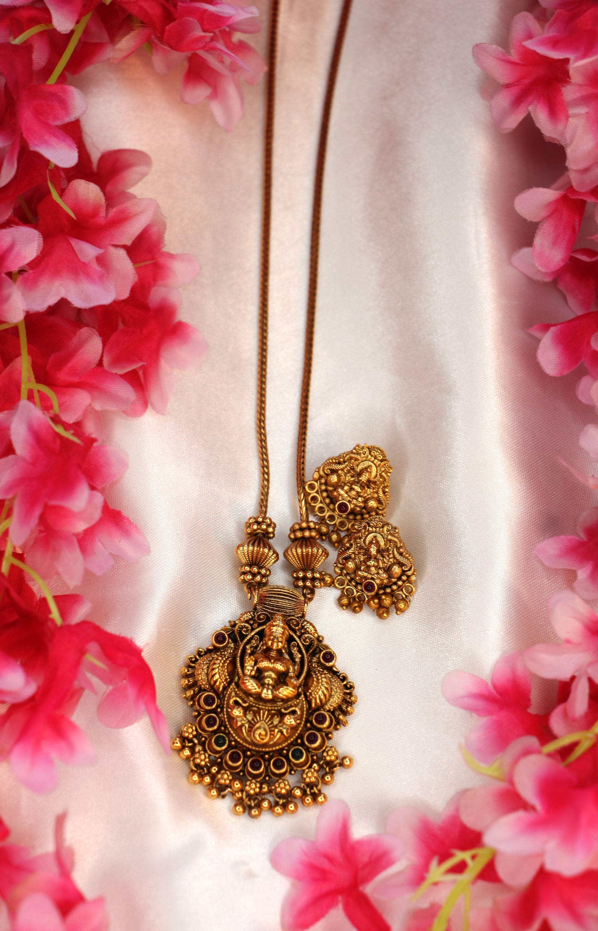Discover Divine Elegance with our Lakshmi Temple Pendant Set (NK08)
