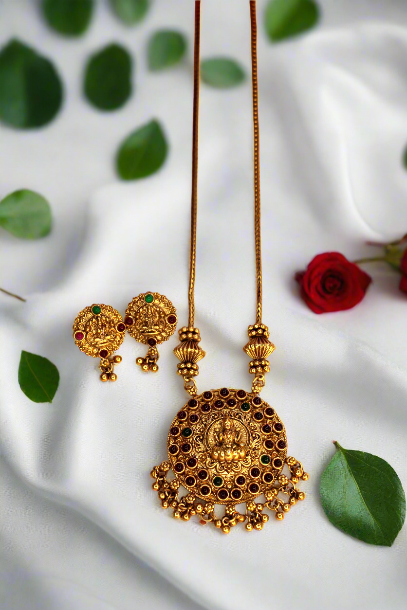 Discover Divine Elegance with our Lakshmi Temple Pendant Set (NK10)