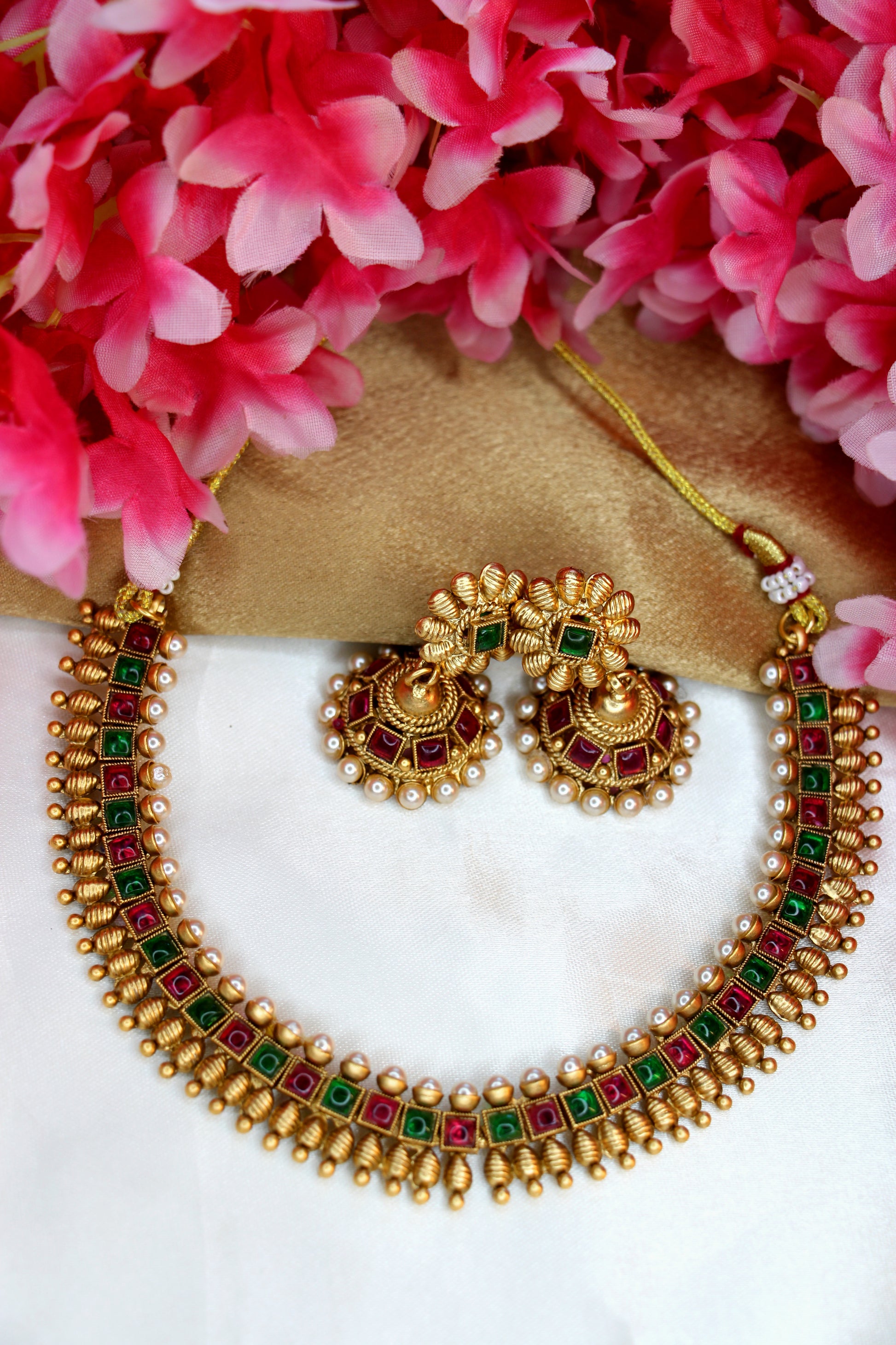 Traditional Gemstone Choker Set | NK19 | Tangamala Jewellery